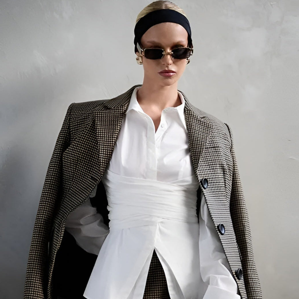 Effortless elegance in a flattering wrap. The sculpted waist and soft drape create a polished silhouette, perfect for work, brunch, or off-duty chic.