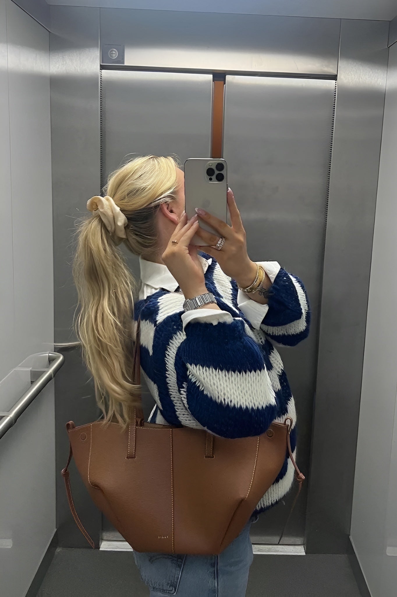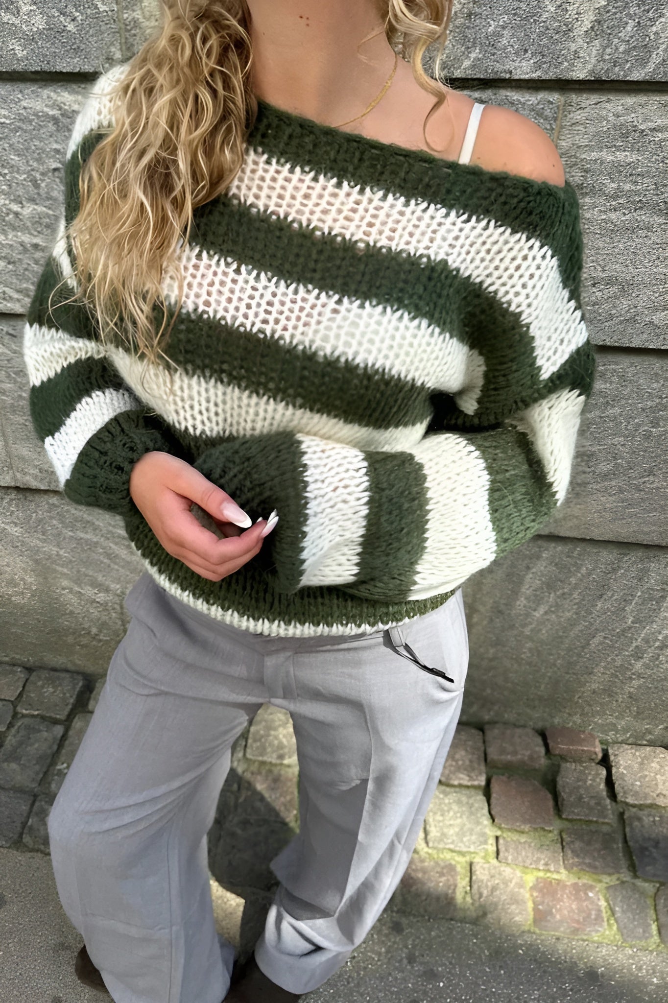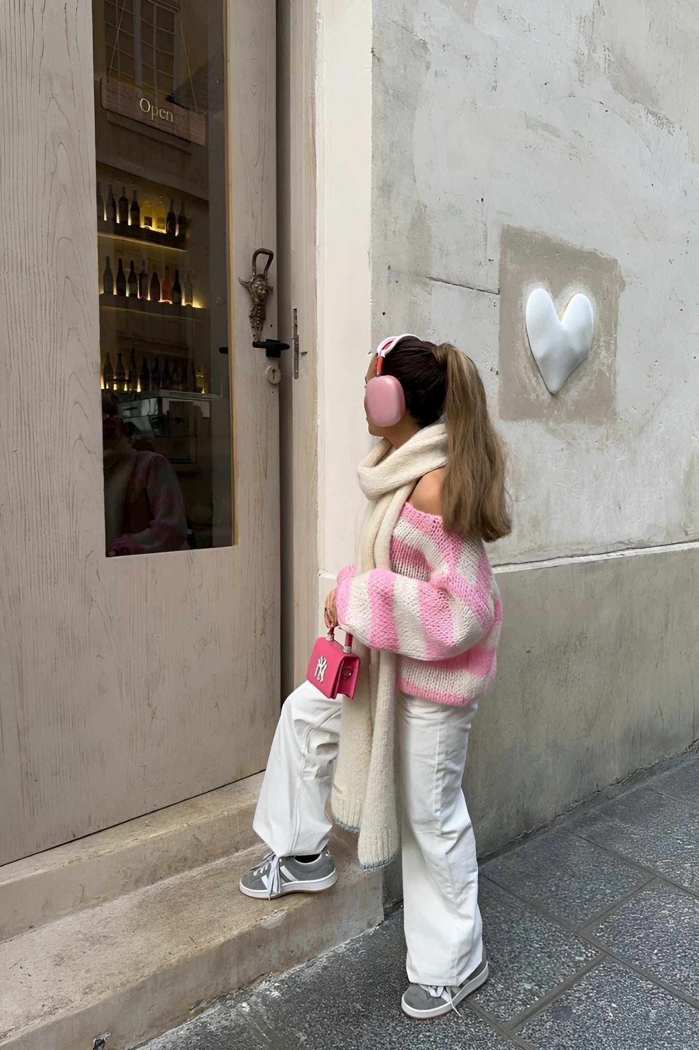 The Nova Knit Sweater brings effortless style and comfort together. With its soft knit fabric, bold stripes, and relaxed oversized fit, it's perfect for cozy days and laid-back looks.